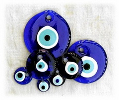There is one typical item, an equity of this region you should take home as a souvenier, it's called the Boncuk, the Little Magic Stone that protects one from the *Evil Eye* turkish=boncuk (pronounced 'bon-dschuk'), you will see this blue glass piece everywhere here in Turkey. Evil eye is a look that is superstitiously believed by Turkish people to be able to cause injury or bad luck on the person at whom it is directed for reasons of envy or dislike. The term also refers to the power attributed to certain persons, of inflicting injury or bad luck by such an envious or ill wishing look.